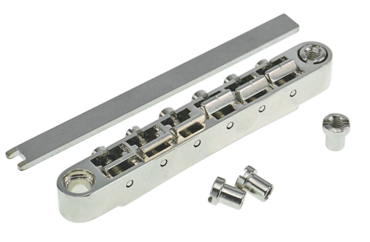 Faber® ABRL"Tone-Lock" Bridge: Locking Bridge For GibsonTM Historics (ABR-1), Nashville Replacement & Imports 4mm. Nickel plated with nickel plated brass saddles.