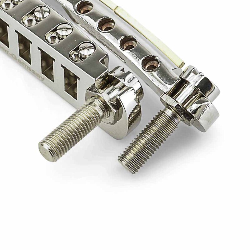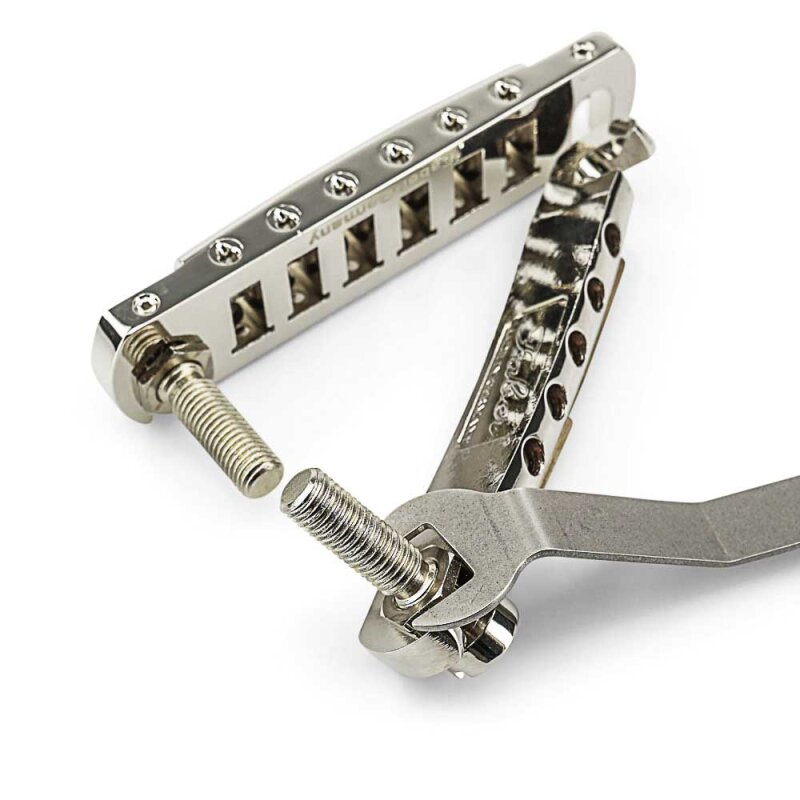 The best available solution for wraparound bridges! Using the finest German steel, the Wrap-Lock is quality you would expect from Faber-Germany. Recommended for all Faber® and other wraparound bridges. Securely locks the bridge in place and eliminates the leaning common with regular studs. In Imperial and Metric sizes in four finish colors: gloss and aged nickel; gloss and aged gold. Included wrench to hold lock nut while tightening.