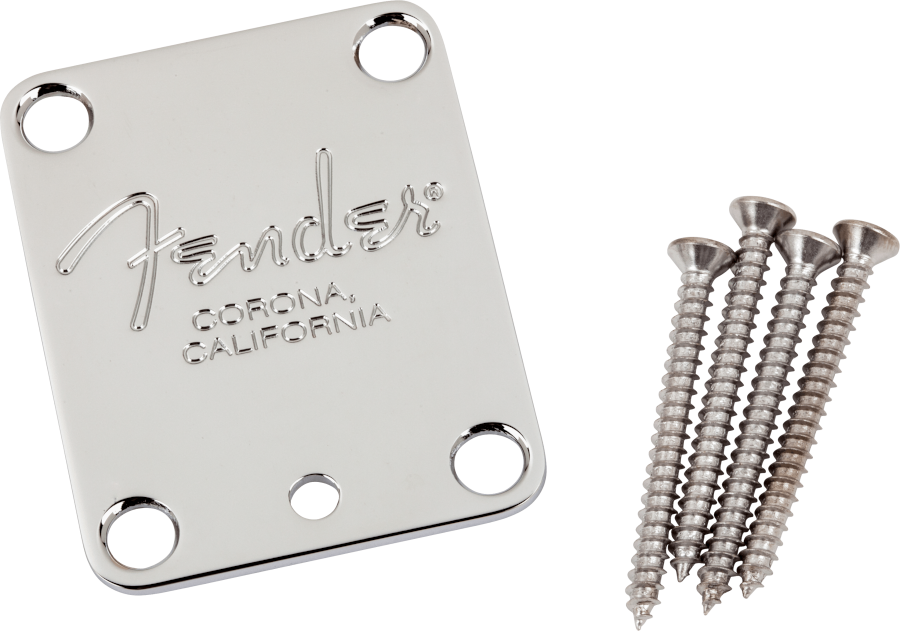 Fender orginal halsplatta med Fender logo och Corona California stämpel. Komplett med skruvar. Made in USA.