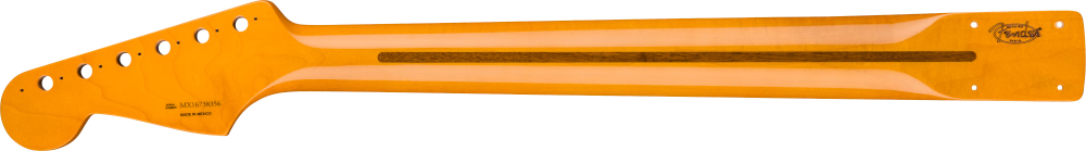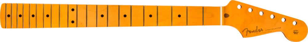 This Fender vintage-style Fender Stratocaster® guitar neck features a comfortable vintage "C" profile and 7.25"-radius maple fingerboard with 21 vintage-style frets and Gloss Nitrocellulose Lacquer.