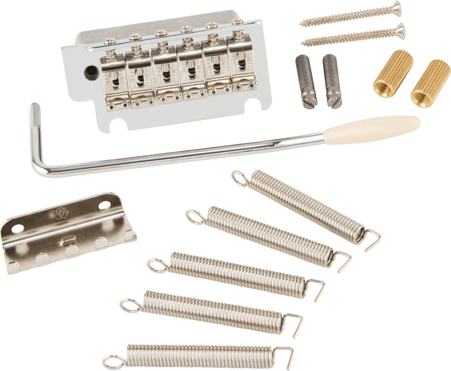 - Includes steel tremolo block, tremolo claw and springs, screw-in tremolo arm with aged white tip, adjustment wrenches and mounting hardware