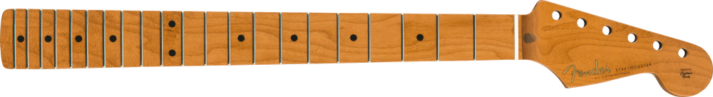 This genuine Fender Stratocaster neck is featuring a vintage style "soft V" neck profile and 9.5"-radius maple fingerboard with 21 medium jumbo frets, for modern playing feel. The synthetic bone nut is pre-slotted with "pilot" grooves for accurate spacing when filing the final string slots. The perfect way to give your Strat® authentic Fender feel, this replacement neck even sports our famous "spaghetti" logo on the headstock.