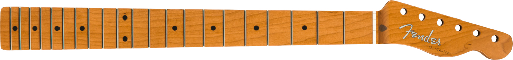 This genuine Fender Telecaster neck is featuring a vintage style "soft V" neck profile and 9.5"-radius maple fingerboard with 21 medium jumbo frets, for modern playing feel. The synthetic bone nut is pre-slotted with "pilot" grooves for accurate spacing when filing the final string slots. The perfect way to give your Strat® authentic Fender feel, this replacement neck even sports our famous "spaghetti" logo on the headstock.