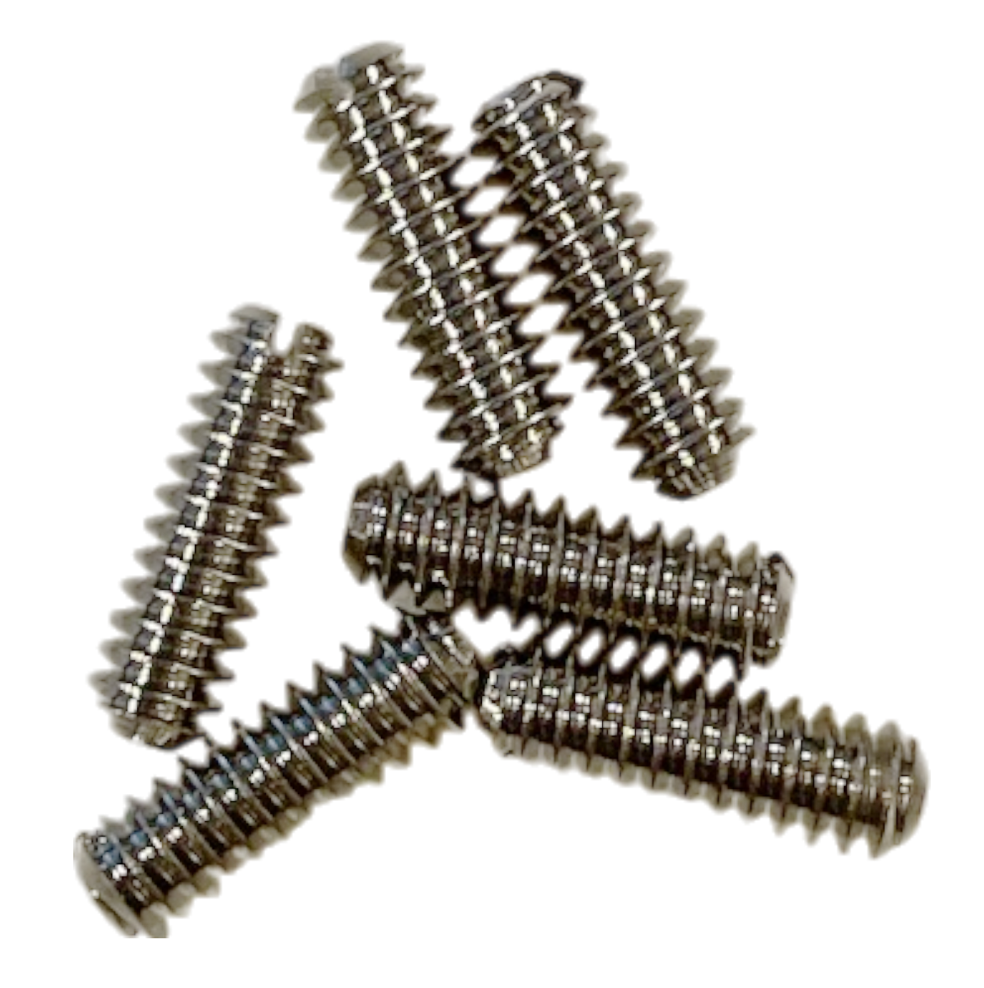 Höjdjusteringsskruv för vintage Tele och basar med USA-gänga. 4st.Ytterdiameter: 3,5 mmGänga: 6-32" Längd: 11 mmSkalle: Spår