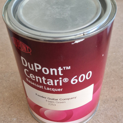 Rätt nyans och rätt lack fylld på sprayburk. Blandad efter Duponts orginalrecept för Fender custom colors från 50- och 60-talet för att exakt rätt kulört. Nitrocellulosa som torkar fort, fyller bra och hårdnar ordentligt (minimalt med mjukmedel och rätt bindemedel).