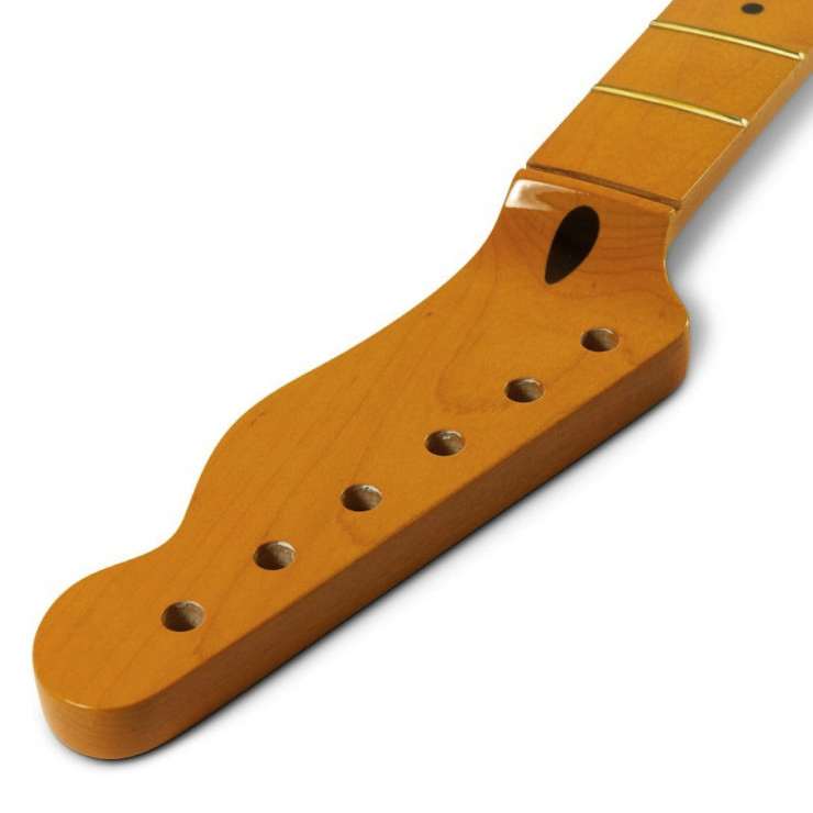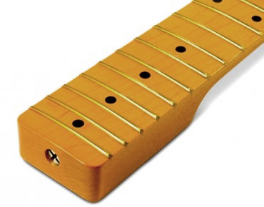 Replacement Vintage Telecaster® neck with mostly vintage and a few subtle modern features like 21 medium frets, 9.5 inch radius, 1 5/8 inch nut width, a comfortable semi-fat 'C' shaped profile and a honey tinted gloss finish. Maple finger board with a heel adjust truss rod location and 8.8 mm peg holes drilled for a vintage Kluson tuning machine as nature intended. Nut not included.