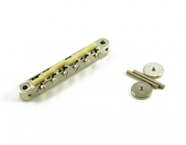 This is the Brand New locking version of the standard ABR-1 bridge equipped with Tonepros® exclusive G-Formula saddles. This new saddle option offered by Tonepros® not only secures your bridge solidly to your guitar BUT the special G Formula saddles decrease string breakage while offering superb the tone that you have come to expect from Tonepros® Sound Labs. This is the same bridge you find on historic reissue guitars direct from the factory with the added benefit of the G-Formula saddles. It still looks identical to your stock piece because it's made from the actual OEM bridge. You won't believe the difference! This model fits your Gibson® Les Paul®, SG®, 335®, as well as most other USA Made Guitars that use a traditional thumbwheel and posts without body inserts. Comes with studs, thumbwheels and allen wrench for adjustment.